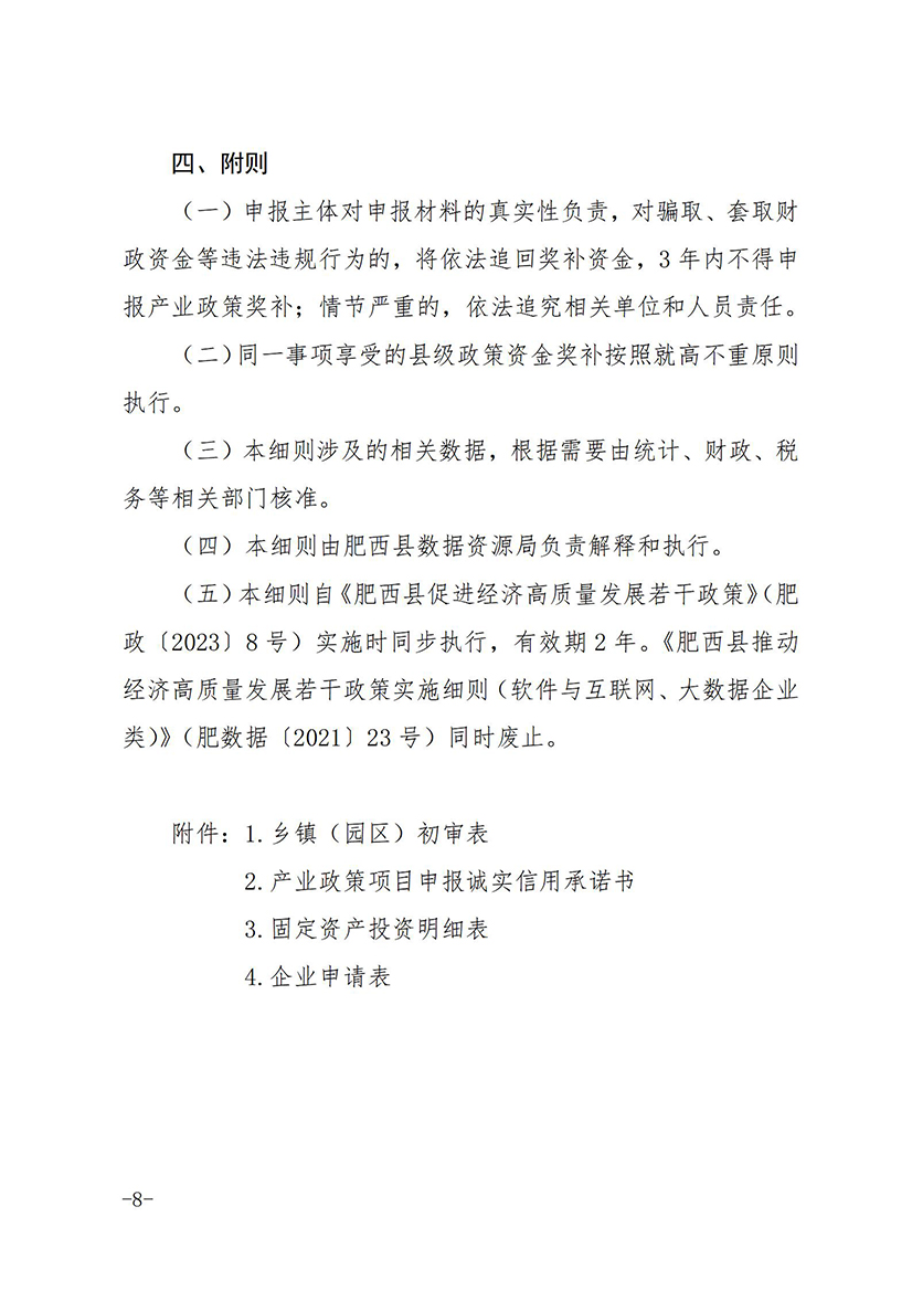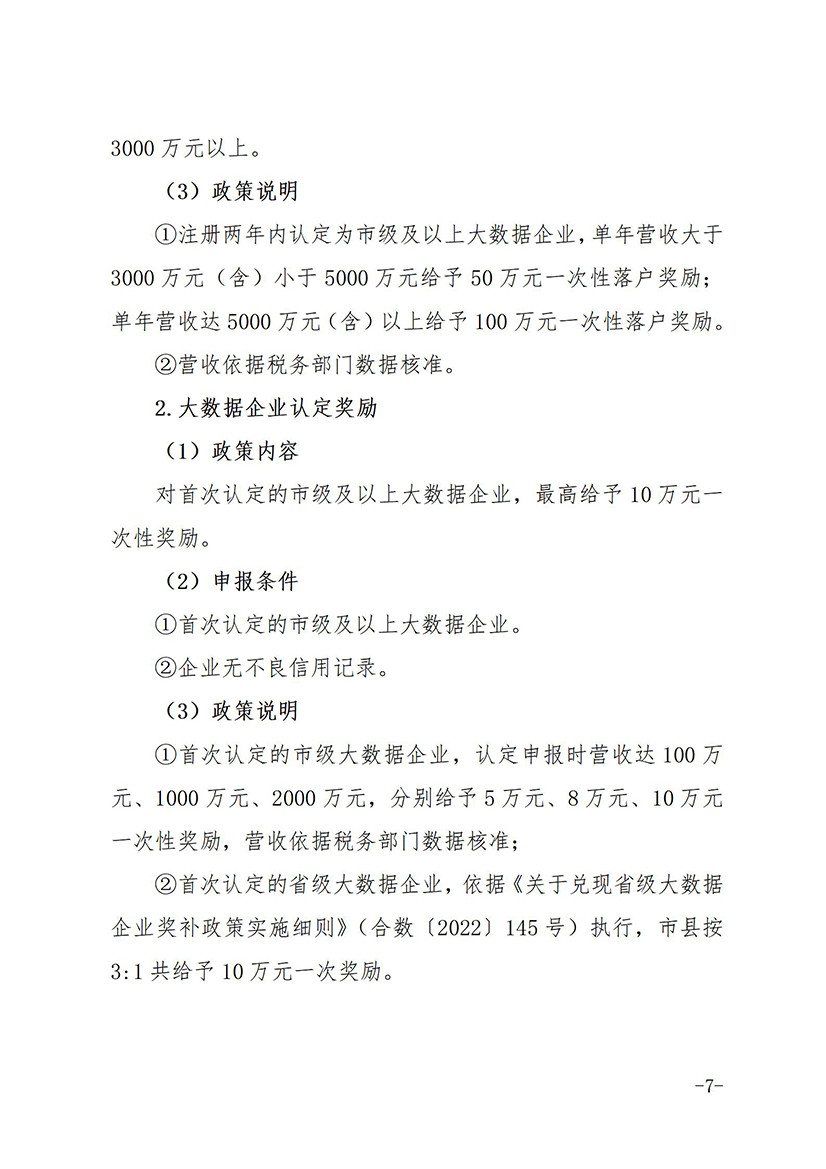 关于印发《肥西县支持大数据企业发展政策实施细则》的通知(肥数据﹝2023﹞4号)20230510.doc